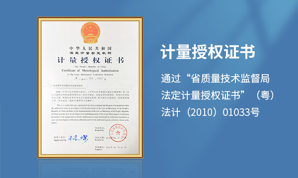 通过“省质量技术监督局法定计量授权证书”(粤)法计(2010)01033号