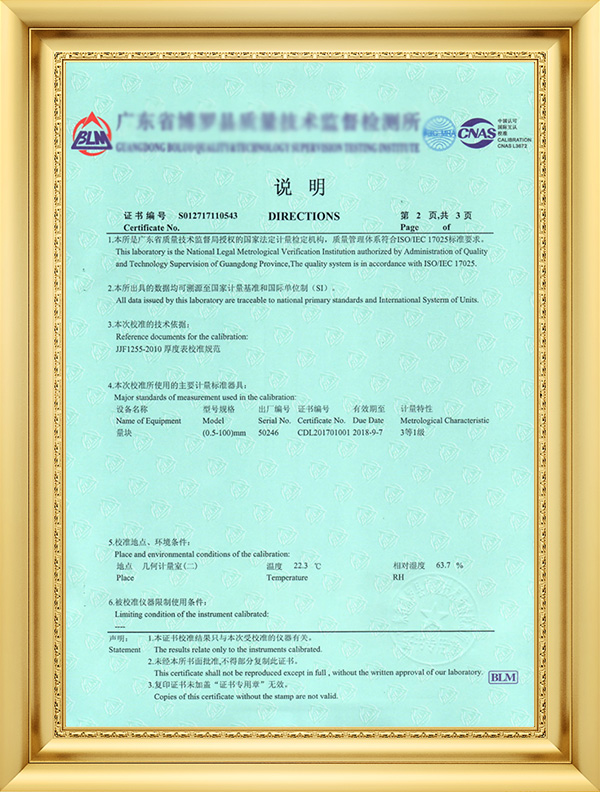 1通过“中国合格评定国家认可委员会校准实验室”编号NO:CNASL3672