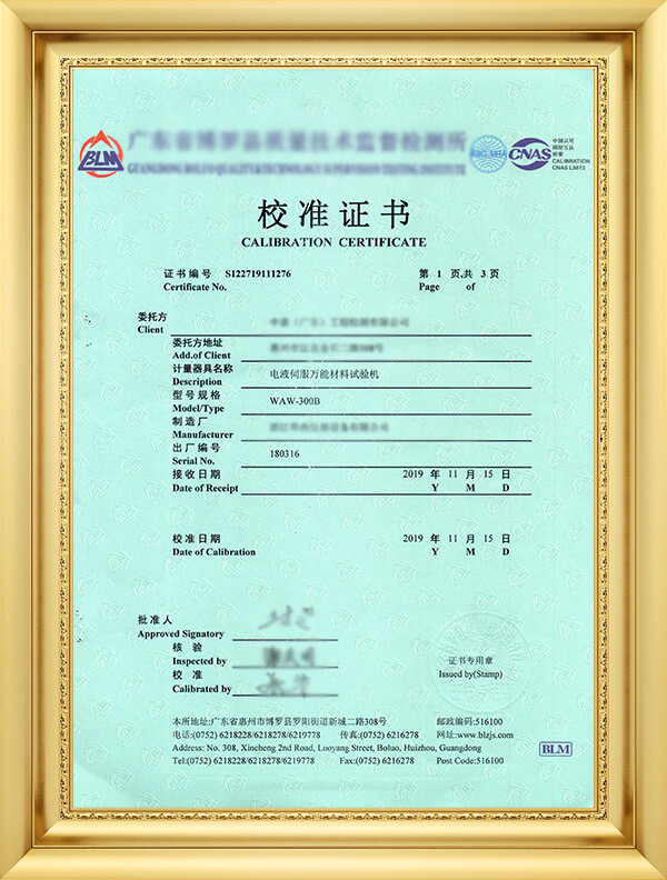 获中国合格评定国家认可委员会校准实验室校准/检测项目306项