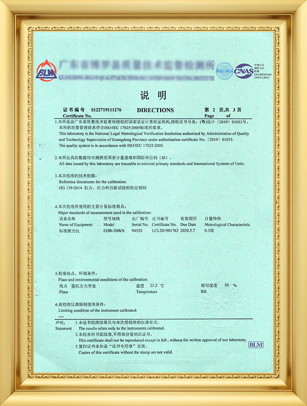 获广东省质量技术监督局计量认可授权校准/检测项目7项