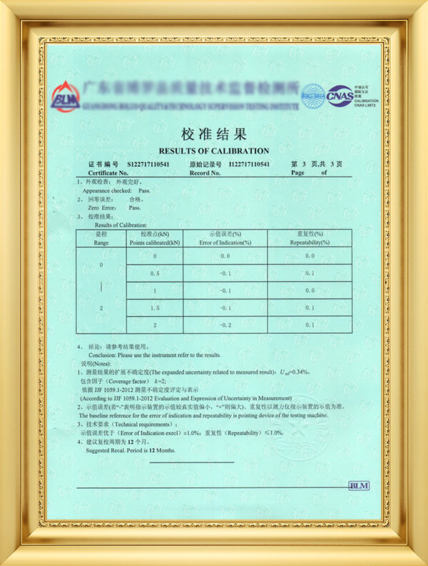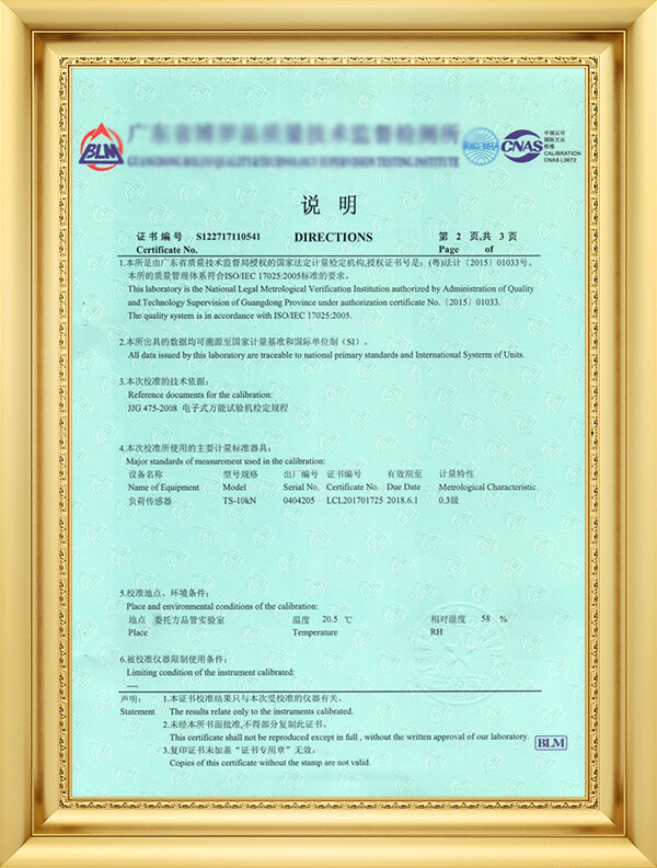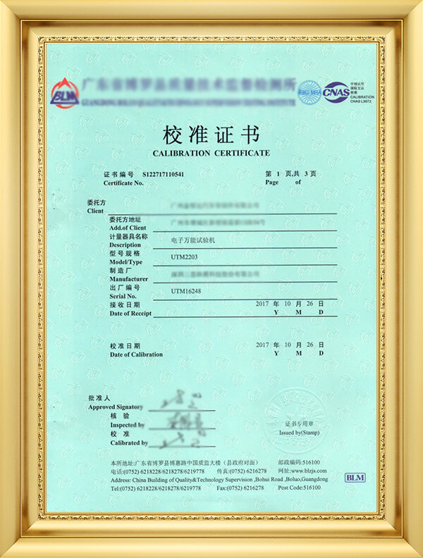 通过“省质量技术监督局法定计量授权证书”(粤)法计(2010)01033号