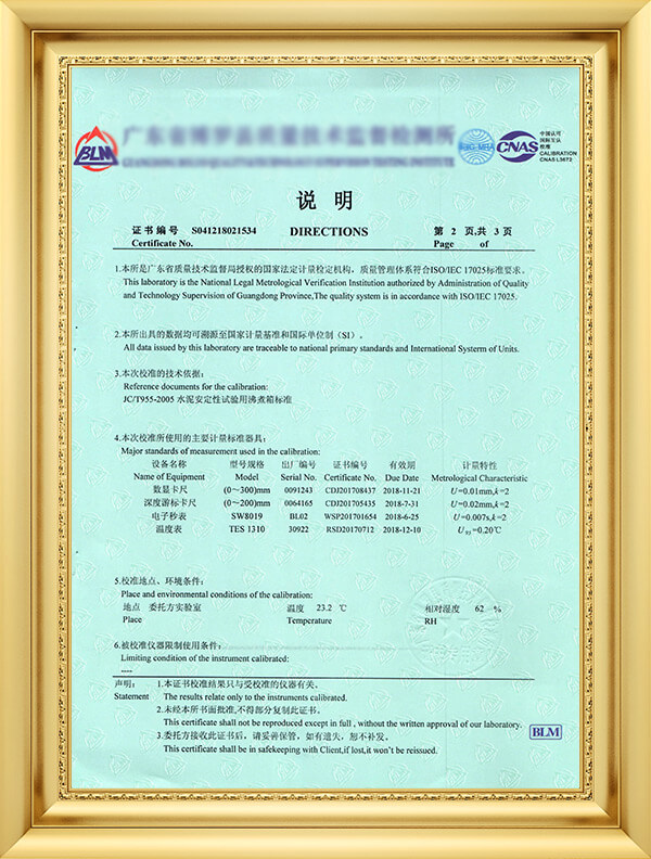 获广东省质量技术监督局计量认可授权校准/检测项目7项