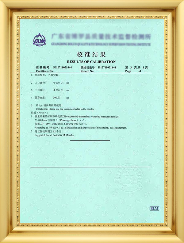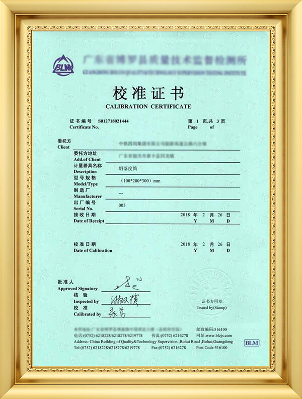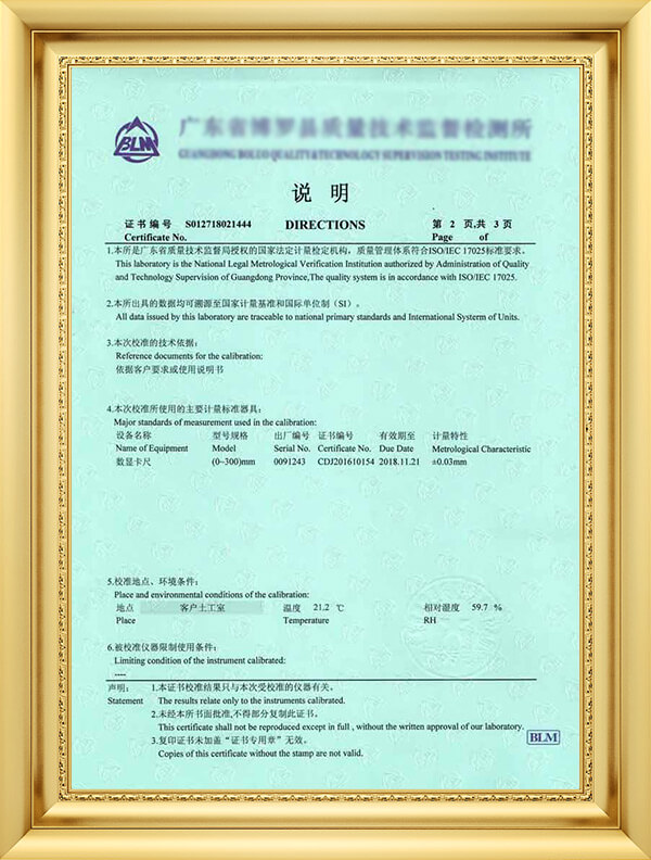 获广东省质量技术监督局计量认可授权校准/检测项目7项
