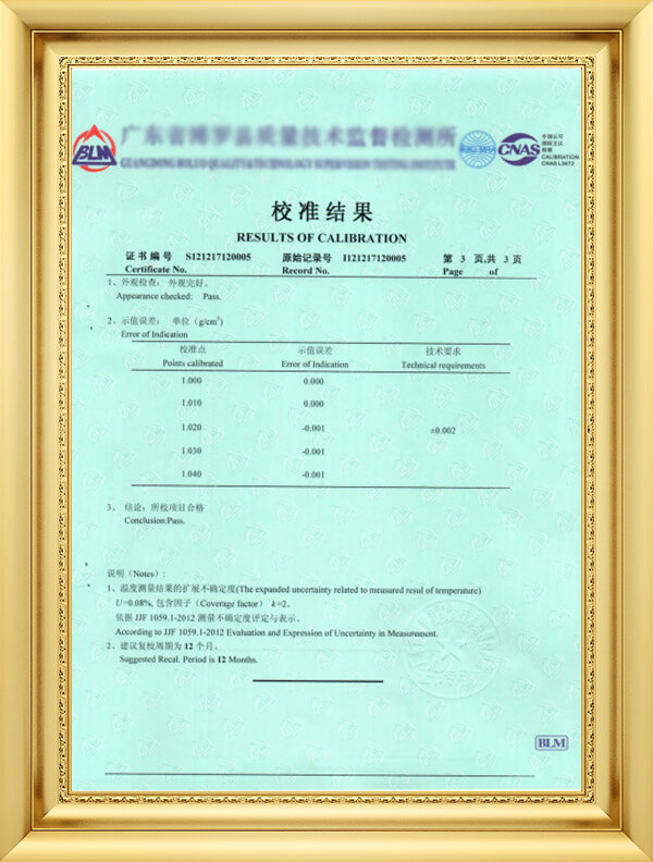 | 分辨率: | 0.001g/cm3 | 温度量程: | 0~100℃ |