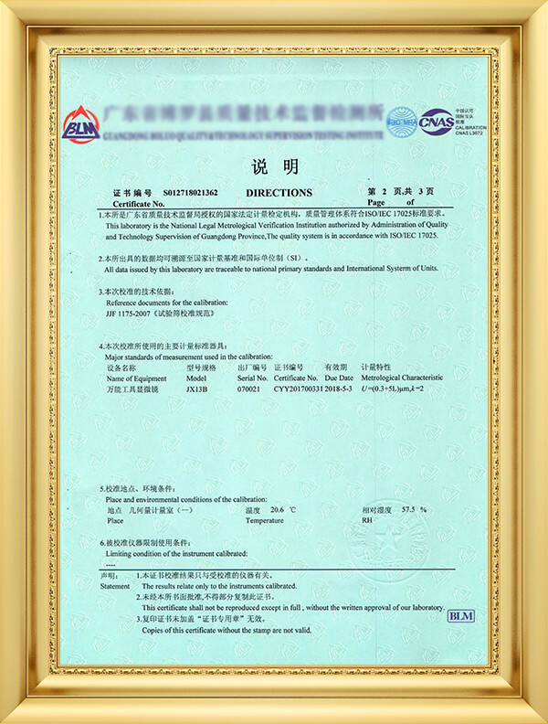 获广东省质量技术监督局计量认可授权校准/检测项目7项