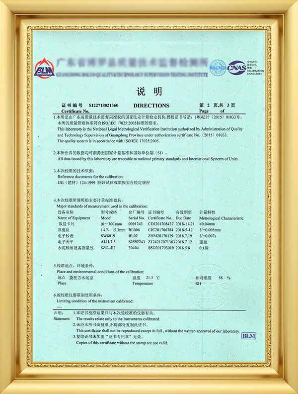 获广东省质量技术监督局计量认可授权校准/检测项目7项