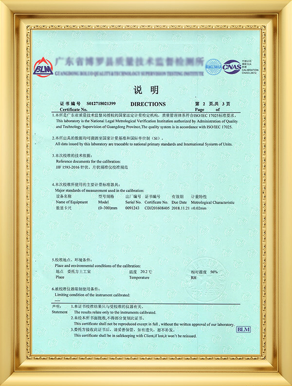 获广东省质量技术监督局计量认可授权校准/检测项目7项