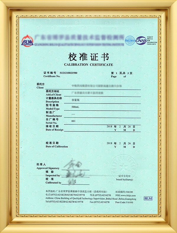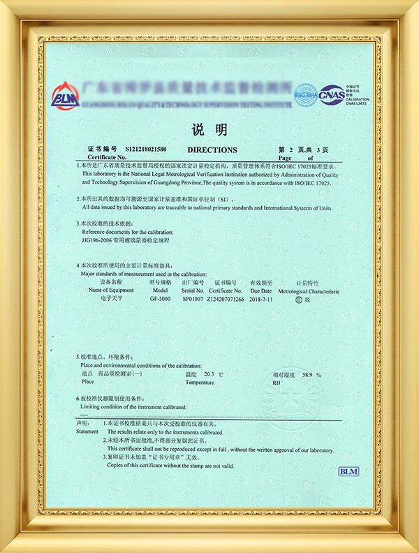获广东省质量技术监督局计量认可授权校准/检测项目7项