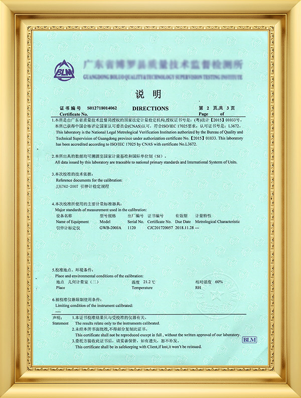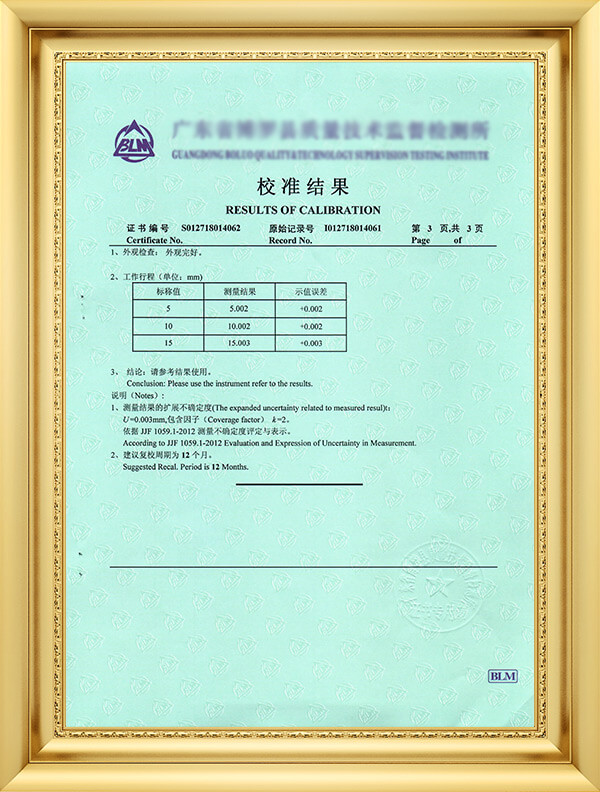 获广东省质量技术监督局计量认可授权校准/检测项目7项